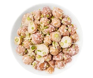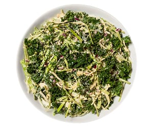 Avec céleri, oignons verts, sauce végétalienne au raifort et à l’aneth