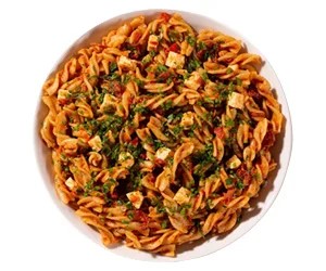 Avec pesto de tomates séchées au paprika, fromage féta et fines herbes