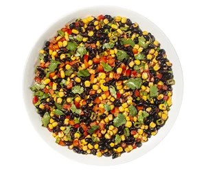 Maïs, haricots noirs, poivrons, oignons verts, coriandre et lime