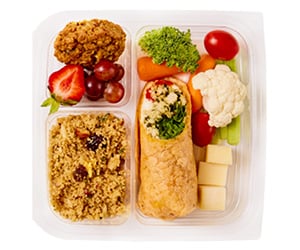 Wrap au poulet au pesto, fromage de chèvre, poivrons rôtis et épinards